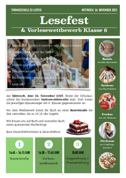 Am Mittwoch dem 26.11.2025 findet ein weiteres Mal das Lesefest statt.