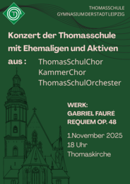 Am 01.11.25 findet ein Ehemaligenkonzert der Thomasschule statt.
